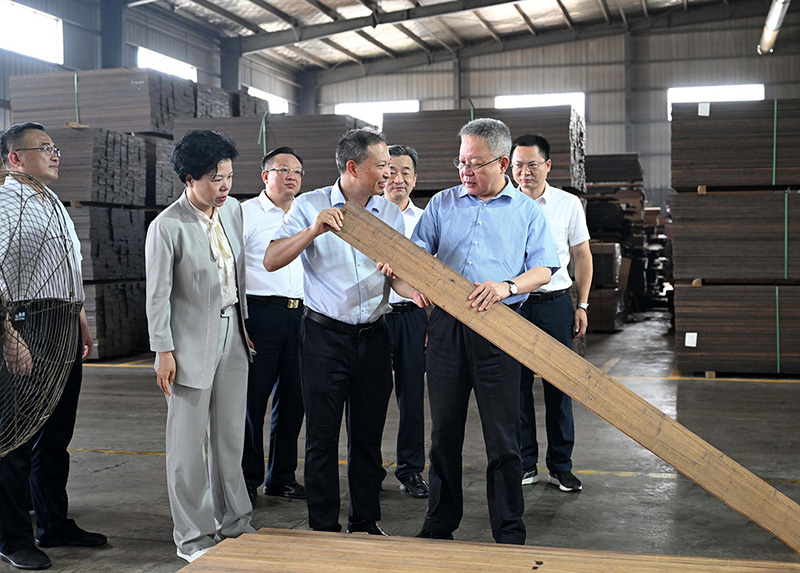 2025年6月16日,省政協副主席虢正貴來湖南桃花江竹材科技股份有限公司調研生態(tài)資源轉化與特色產業融合發(fā)展。公司董事長、省人大代表薛志成陪同并介紹情況。虢正貴充分肯定了桃花江竹材在竹資源利用及竹特色產業融合發(fā)展所取得的成果,他鼓勵企業繼續發(fā)揮龍頭優(yōu)勢,充分利用好桃江資源稟賦和產業優(yōu)勢,深化產學研融合,提升竹產業附加值,為民族地區生態(tài)資源高效轉化和特色產業融合發(fā)展探索更多經驗。